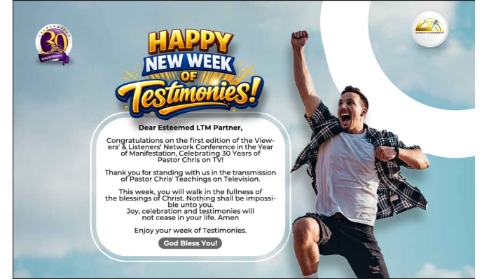 HAPPY NEW WEEK OF TESTIMONIES
